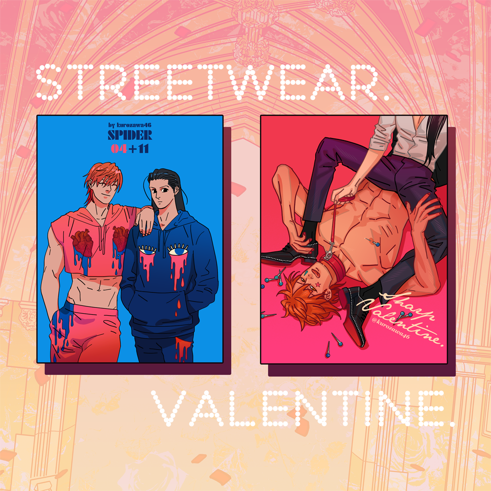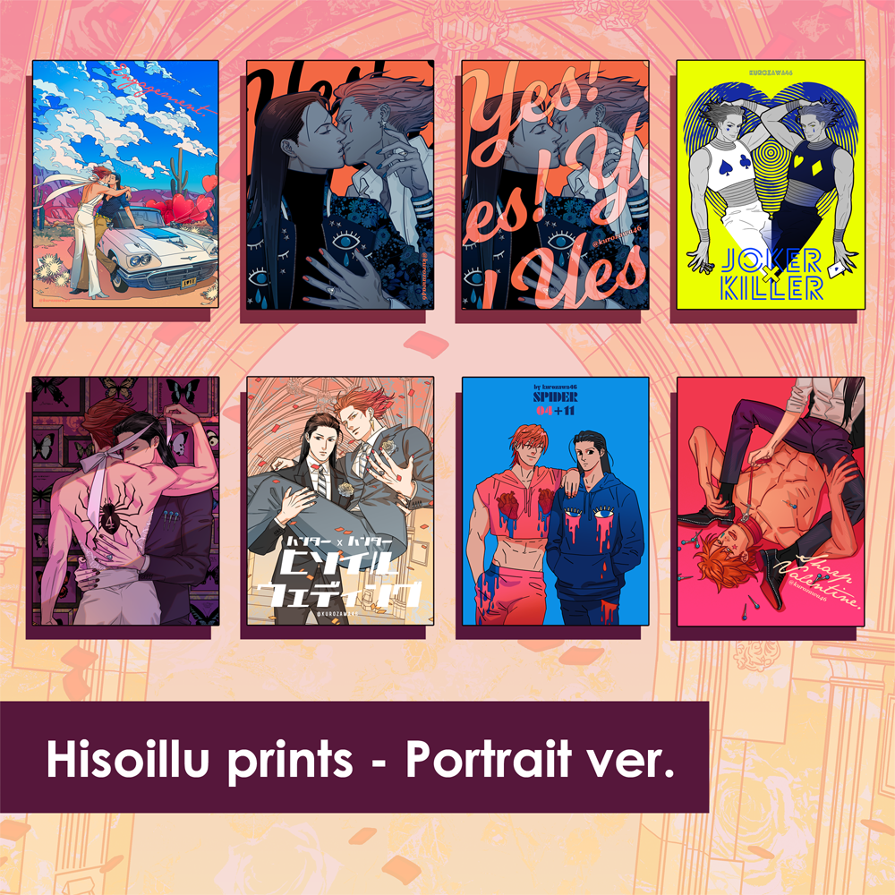 Hisoka/Illumi postcard-size prints, set of eight (8). Portrait version.